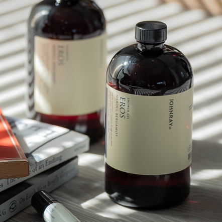 以檀香精油、岩蘭草精油為主調,透過芳療級洗沐保養,運⽤檀香沉穩安定能量,打造聖⽊環繞的靜⼼浴場。